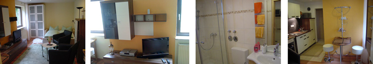 Die Wohnung verfügt über eine Küchenzeile mit kompletter Küchenausstattung, Bad mit Dusche, WC und ein Wohn-/Schlafraum mit Farb-TV - Sat und Internetanschluss.